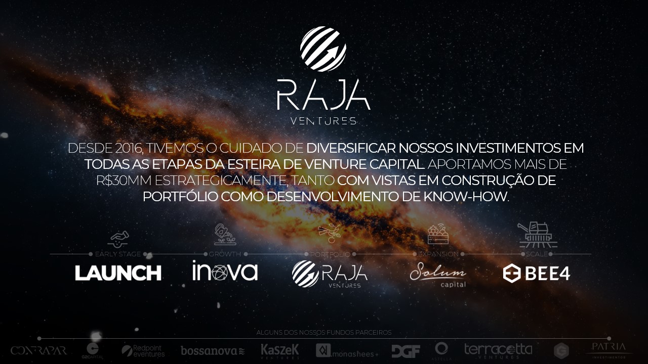 Nós poderíamos colocar aqui um belo e rebuscado texto falando sobre dor de mercado, validação de negócio e tantas outras disciplinas importantes que, assim como a maioria das aceleradoras no mercado, certamente iremos avaliar! Entretanto, aqui no RAJA nós não abrimos mão do “walk the talk”, ou seja, de fazer o que falamos e, por isso, aqui nós praticamos o chamado “skin in the game”, que nada mais é do que entrar no jogo e contribuir de forma relevante com os negócios.